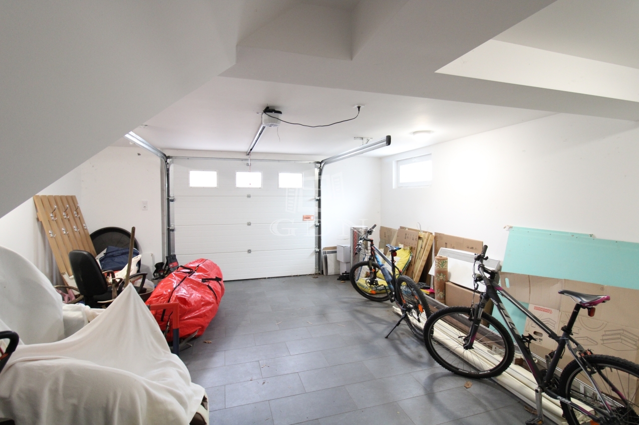 Ezen kívül a házhoz tartozik egy két gépjármű tárolására alkalmas 39nm nagyságú garázs, aminek a tetőterébe lépcsőn lehet feljutni és igény szerint a tetőtér beépíthető.