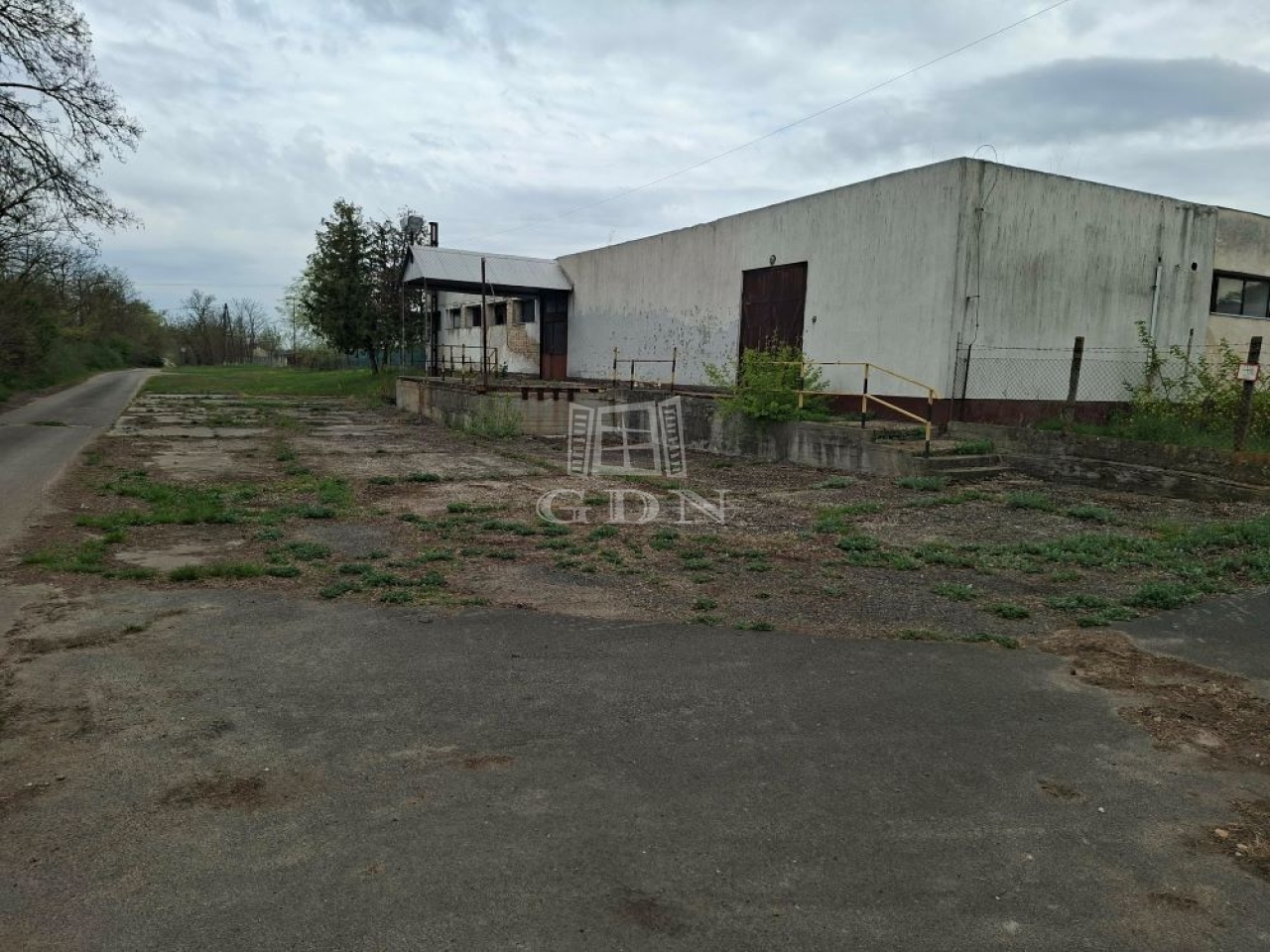 -üzemi épület rámpaszinten található, körbekerített aszfalt út mentén