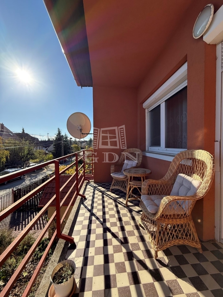 az emeleten: , tágas előszoba, 2 szoba ( az egyik erkéllyel), konyha étkező a fürdőszoba ,wc található.