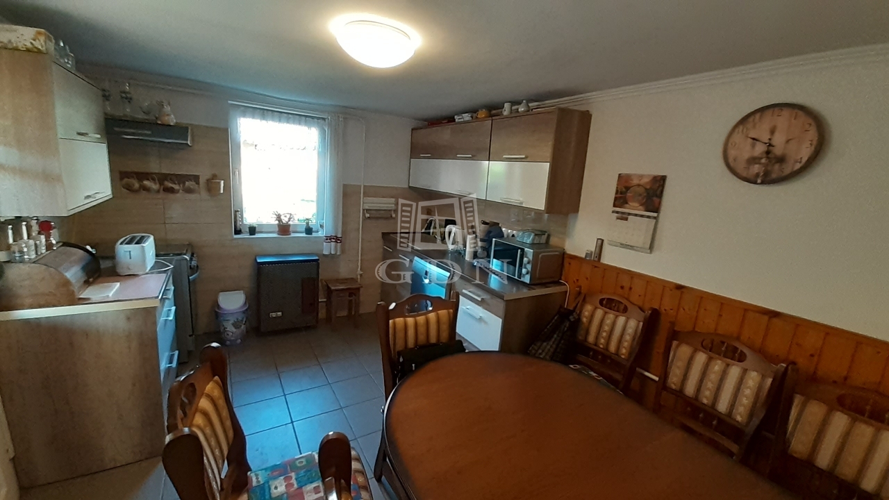 A fő épületben nem található külön konyha a méret miatt, viszont egy fedett nagy terasz köti össze a pár lépésre lévő szépen berendezett téli-nyári konyhával. Itt minden megtalálható, amire szükségünk lehet: konyhai nagygépek (mosogatógép, hűtő, elszívó, stb.), beépített szekrények, nagy ebédlő asztal, teljes közmű, fűtés.