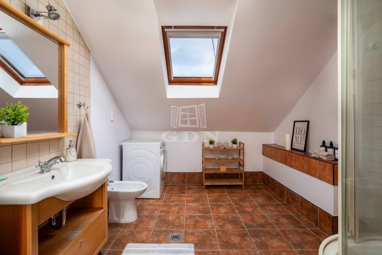 A tetőtér kifejezetten napfényes, jól használható elrendezéssel.