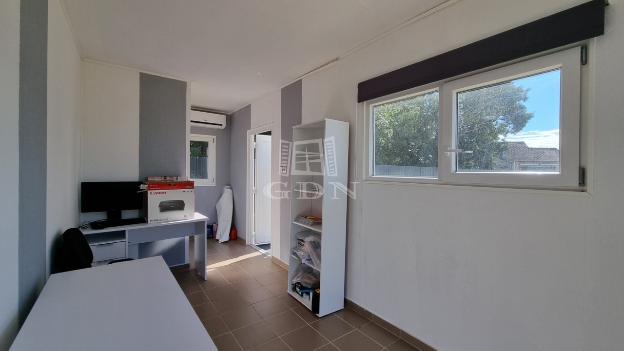 A klimatizált konténerirodában a víz, villany és a szennyvíz elvezetése megoldott. A murvával felszórt, kerítéssel körbekerített telephely széles úszókapuval rendelkezik.